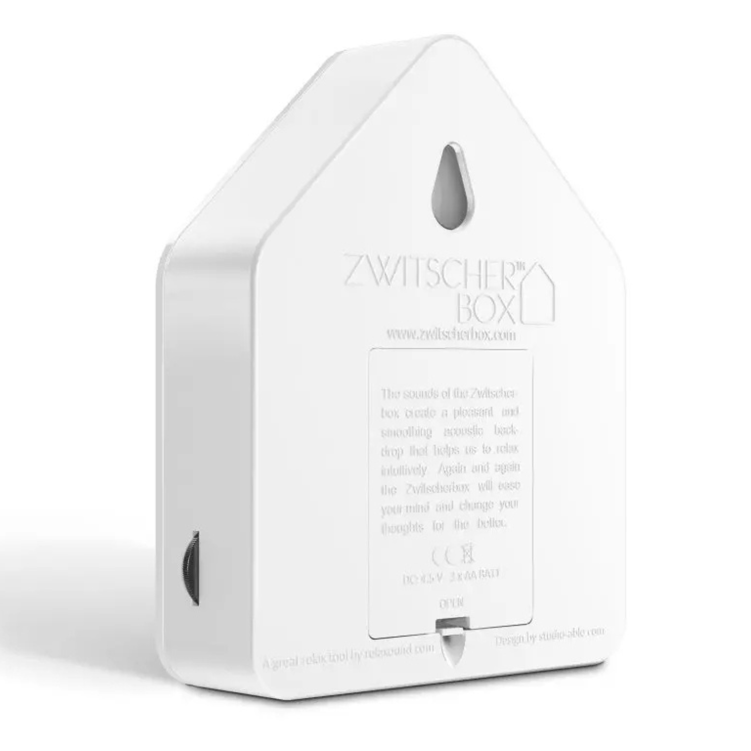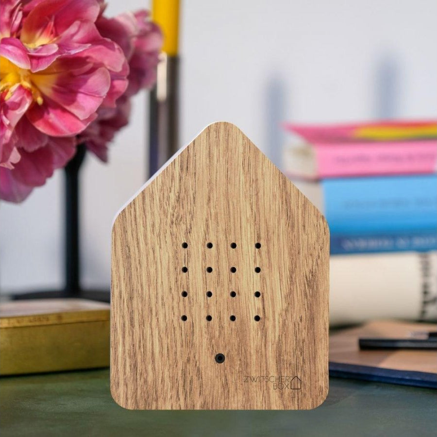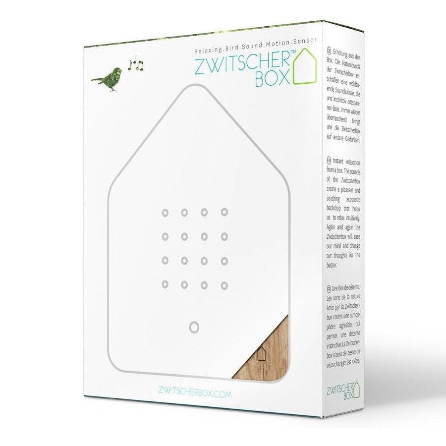 Låt hemmet fyllas av ett lugnande fågelkvitter. Zwitscherbox är en elegant ljudbox som spelar upp koltrastens harmoniska sång varje gång du passerar. Den aktiveras av en ljuskänslig rörelsesensor och bjuder på en två minuter lång fågelkonsert som får dig att stanna upp och andas ut.